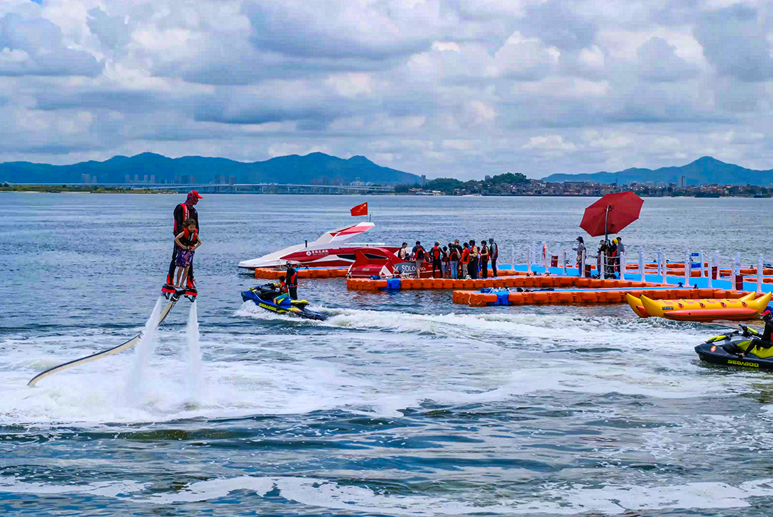 在公司运营下,厦门滨海水运动度假区已开辟了摩托艇、尾波冲浪、彩虹拖伞、动力滑板等十余种水上娱乐产品,为市民游客提供一站式玩水体验,致力于将度假区打造为福建人潮玩水运动的首选。